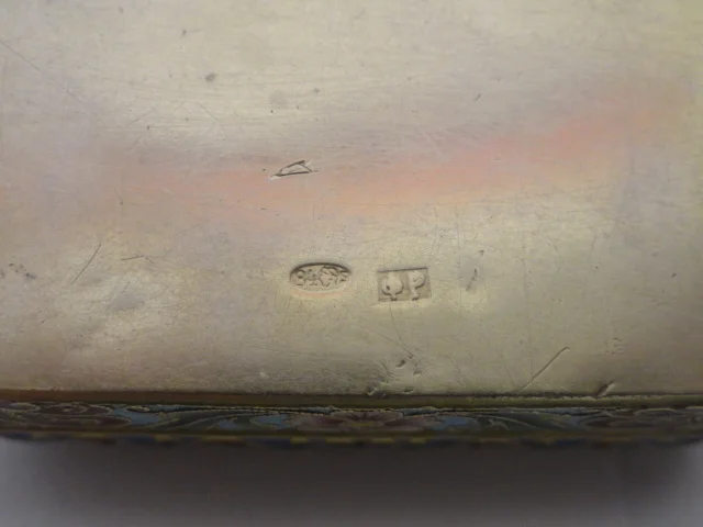 Antique Russian silver 84 cloisonne enamel pill box by Feodor Ruckert.
