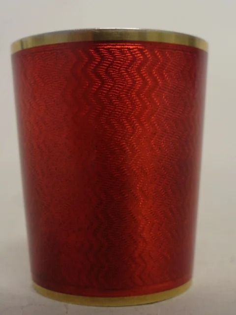 A beautiful antique Russian Faberge silver 91 guilloche red enamel cup. Height is 1.8 inches, Weight is 34 grams.